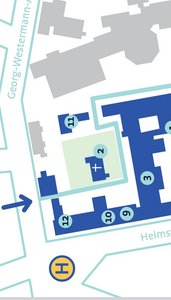 Von der Helmstedter Str. in die Georg-Westermann-Allee abbiegen.