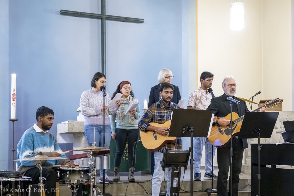 Usually, we start with some nice Indian and German food, get to know each other, share what has happened since our last meeting and do Bible sharing on the sermon text of the following Sunday. Following that we have a joint prayer incl. individual requests, sing a few songs and share the blessing.