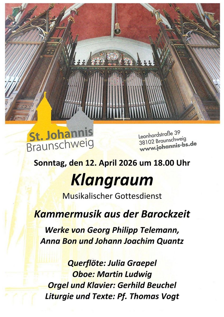 Klangraum-Gottesdienst am 12.04.2026 18.00 Uhr St. Johanniskirche, Leonhardstr. 38